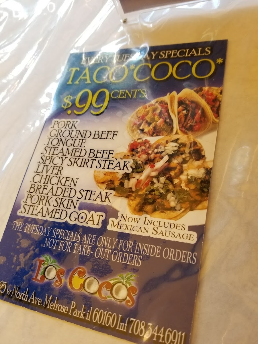 Taqueria Los Cocos #2 Melrose Park Menu